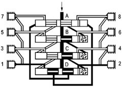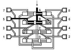 這時(shí)活塞B至D從左側向右側運動(dòng),按以上相反方向順序動(dòng)作完成一個(gè)周期循環(huán)并可重新開(kāi)始一個(gè)新的循環(huán)。