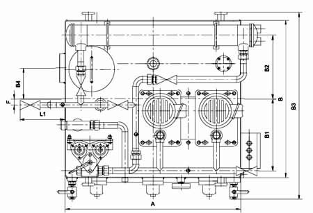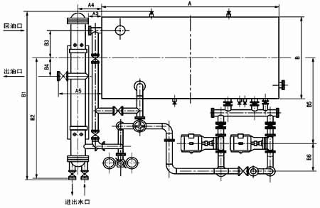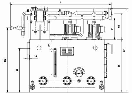 ≥250L/min稀油站,采用蒸汽加熱油箱中的潤滑油,儀表盤(pán)尚多一檢測冷卻器進(jìn)出水管壓差的儀表,其主要部件均另外裝于基礎上;而≤125L/min稀油站的全部部件都裝在油箱上,為整體式結構。 |